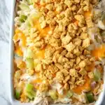 Q: Can I freeze leftovers? It’s best not to freeze this casserole since the Ritz cracker topping loses its texture and can get soggy.