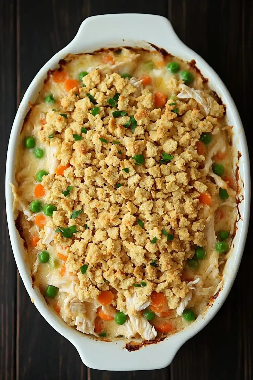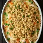 It’s easy to imagine gathering around the table with family or friends, the casserole bubbling hot and the Ritz crackers offering that irresistible crunch. The mix of tender chicken and soft vegetables in a creamy sauce feels like a reward after a long day, while the cracker topping adds a playful texture that keeps things interesting. Plus, it’s one of those dishes that somehow tastes even better the next day, making leftovers something to look forward to rather than dread.