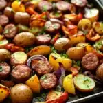 A simple and delicious sheet pan dinner featuring crispy roasted potatoes and savory sausage, perfect for an easy weeknight meal.