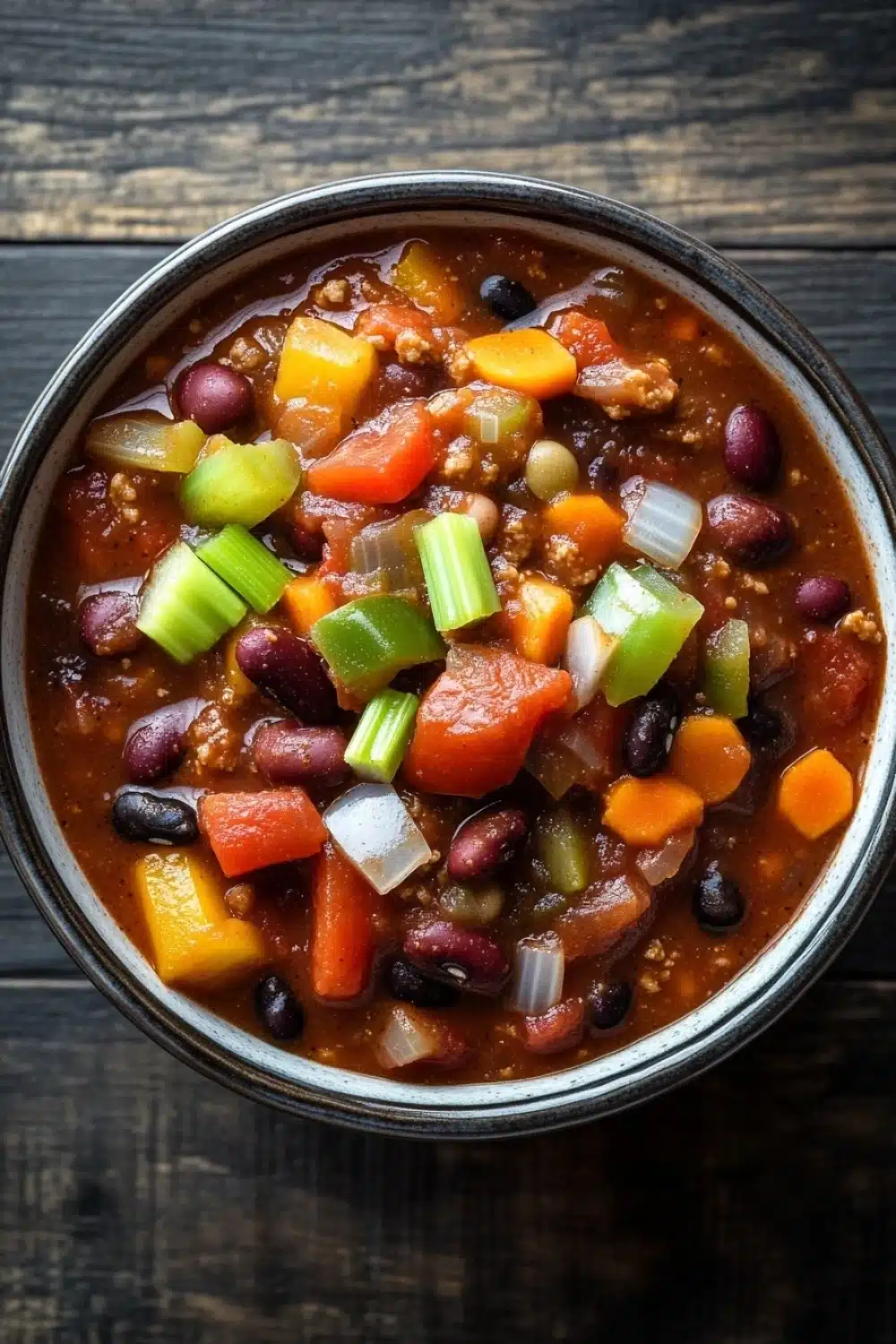 A hearty and flavorful slow cooker chili made without meat, packed with beans, vegetables, and spices. Perfect for a comforting, vegetarian meal.
