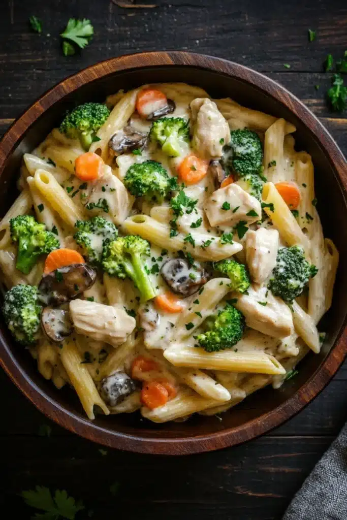 When the week turns hectic, this creamy chicken and veggie Alfredo freezer meal steps in to save the day. Ready ahead and bursting with comforting flavors, it’s the kind of dinner that waits patiently in your freezer until you’re ready for a warm hug on a plate.