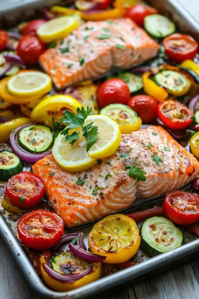 Discover a straightforward, wholesome meal that brings salmon and vibrant veggies together on one pan. Perfect for those nights when you want dinner without the fuss.