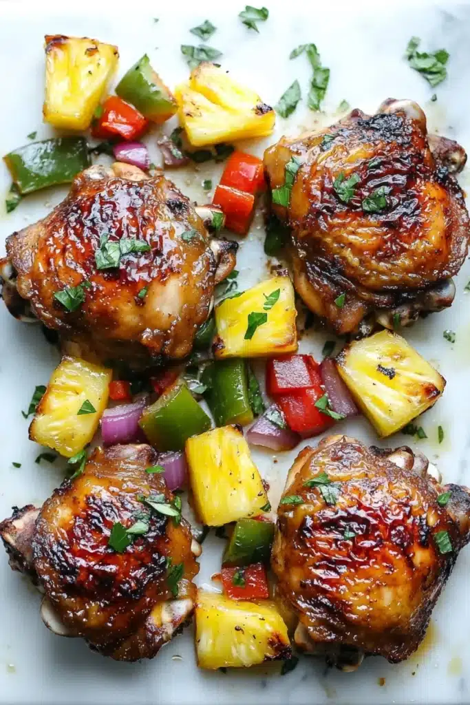 Imagine juicy chicken thighs mingling with sweet pineapple and vibrant peppers on one pan. Minimal cleanup, maximum flavor—let’s dive into this easy dinner idea.