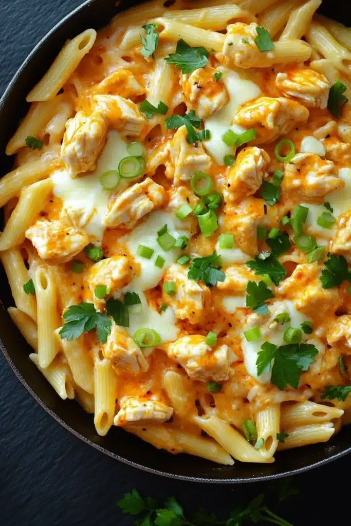 This one-pan wonder blends spicy buffalo sauce with creamy ranch and tender chicken, all tossed with cheesy pasta for a meal that hits all the right notes.