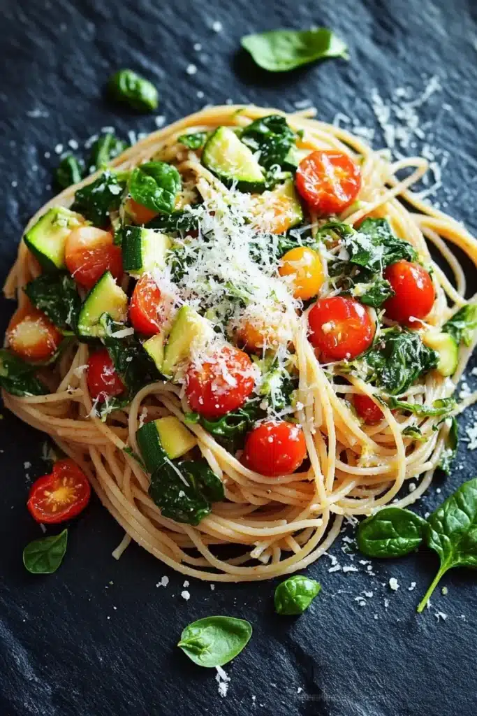 A fresh, veggie-packed pasta dinner that’s easy to whip up and gentle on calories—just right for those busy evenings you want something satisfying but not heavy.