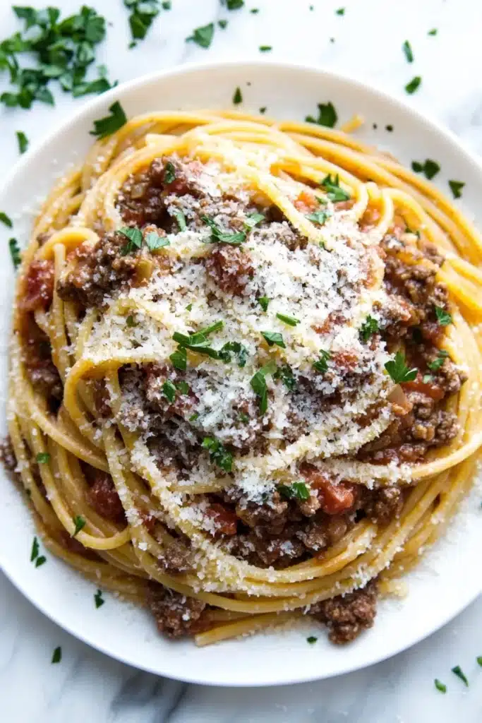 Dive into a comforting plate of spaghetti topped with rich, savory beef sauce. This pasta dinner with beef brings warmth and satisfaction to any night.
