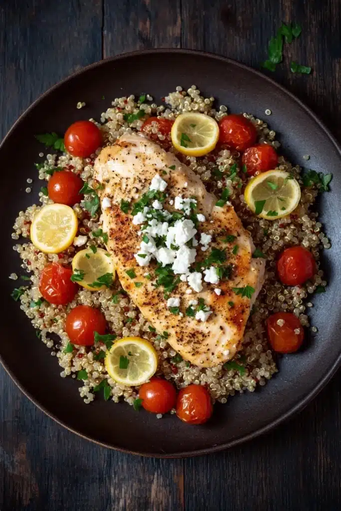 This one-pan meal brings together tender chicken, zesty lemon, and creamy feta over fluffy quinoa. It’s a straightforward dinner that feels special without fuss.