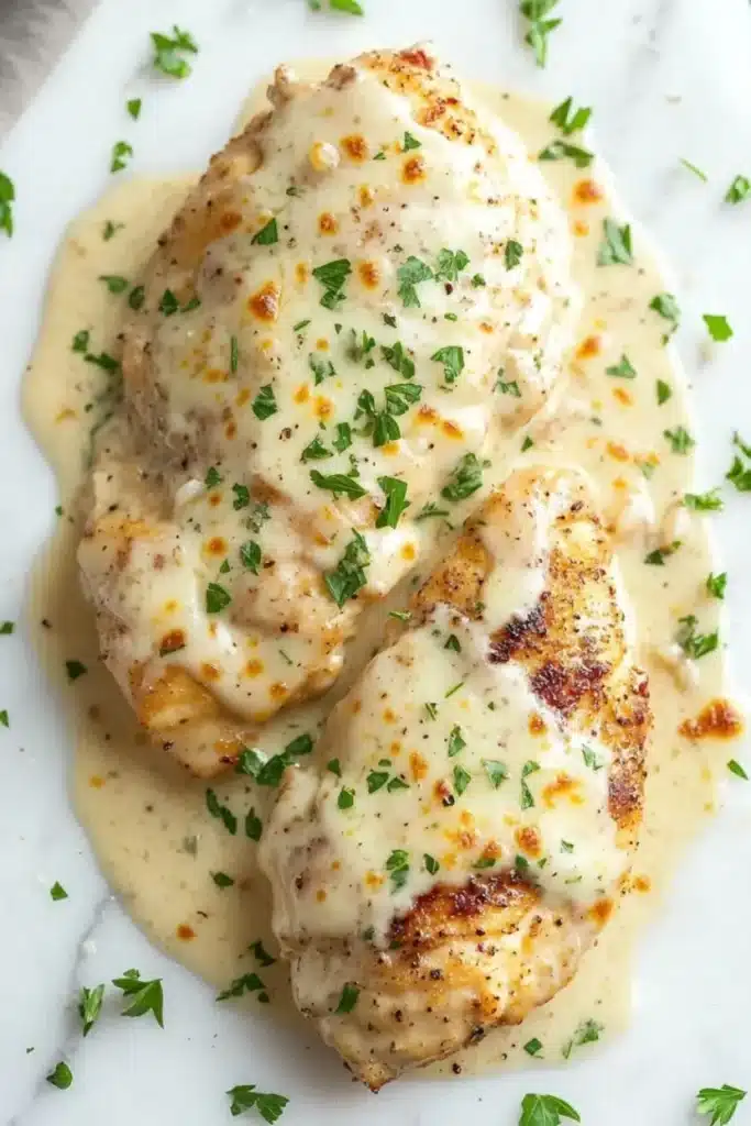 A rich, creamy slow cooker chicken dish that fills your kitchen with the comforting aroma of garlic and Parmesan. Perfect for those evenings when you want dinner ready without the fuss.