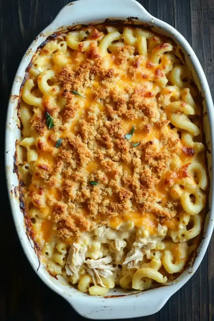 Dive into a cozy dinner that blends tender chicken, creamy mac and cheese, and a crunchy golden topping. This baked chicken mac and cheese casserole is comfort food at its best.