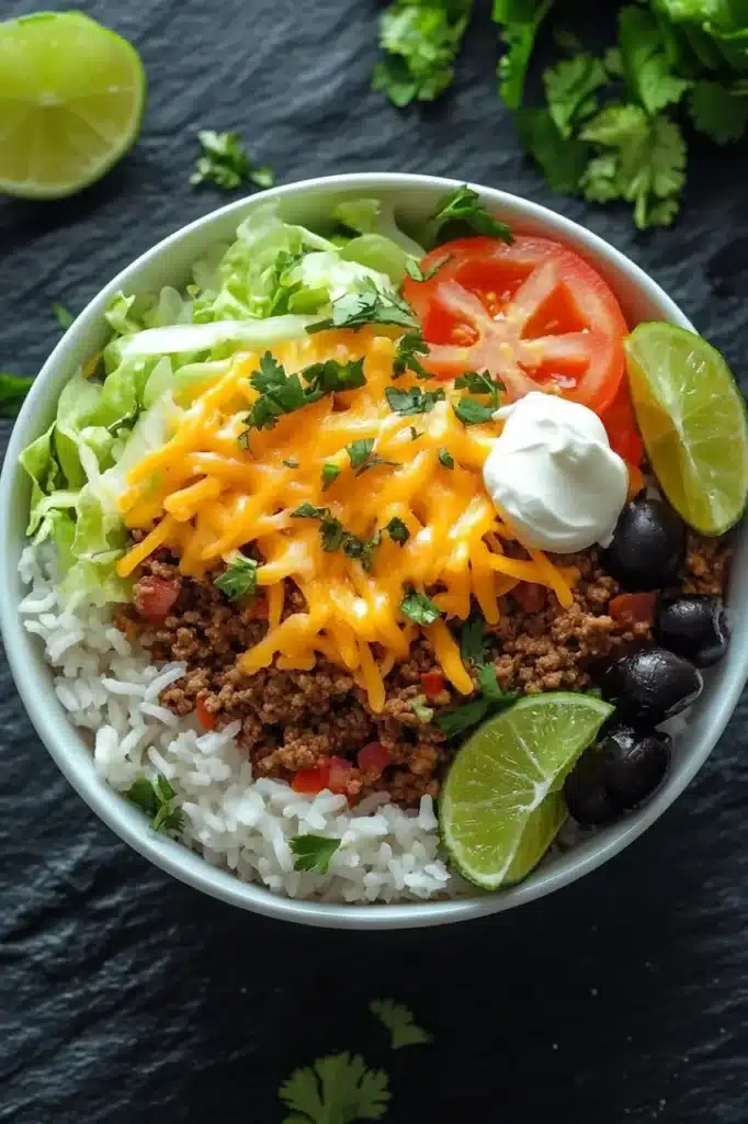 Discover how a simple, hearty meal brought comfort and ease to a hectic evening, blending seasoned beef, fresh toppings, and a tangy drizzle in one bowl.