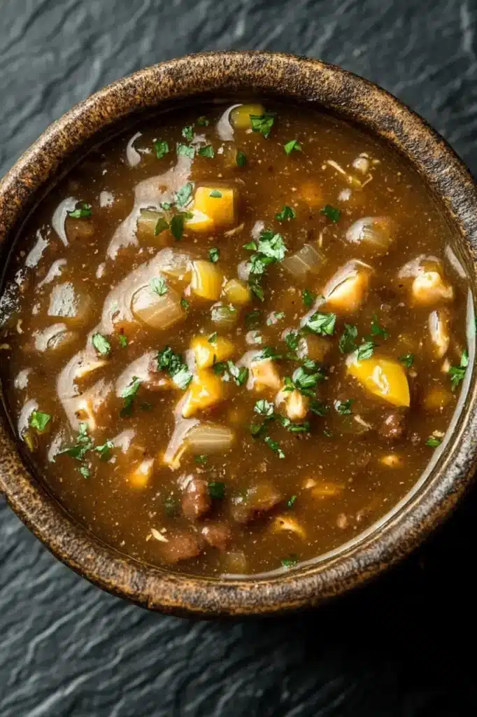 This beef chicken gravy blends rich flavors into a silky sauce that makes every bite feel like a warm hug. Ideal for draping over mashed potatoes or roasted favorites.