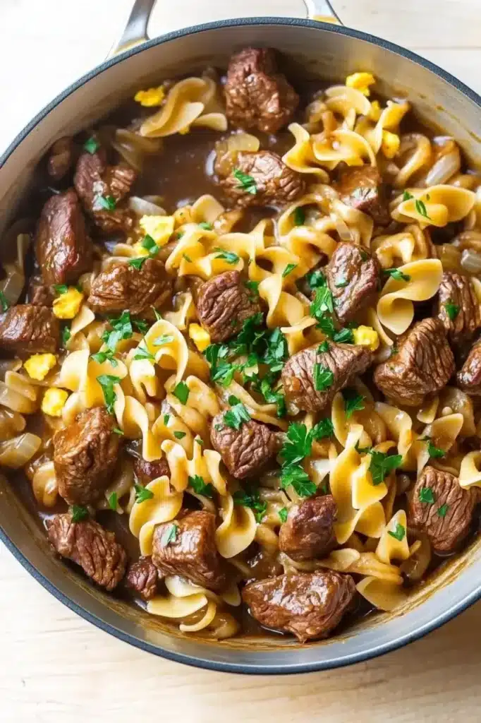 When the day winds down and you need something warm and satisfying, this skillet beef tips and noodles recipe hits the spot with tender meat and buttery noodles.