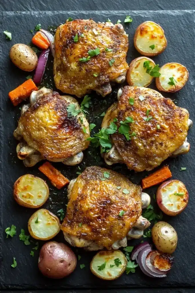 Imagine a dinner where the oven does most of the work, filling your kitchen with mouthwatering aromas as tender chicken thighs roast alongside vibrant veggies. This sheet pan meal turns a busy night into a comforting ritual.