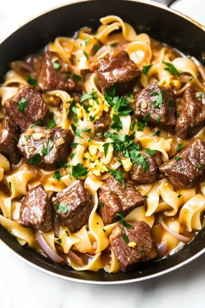 A comforting one-pan meal that blends tender beef in savory gravy with buttery egg noodles—ideal for those evenings when you want hearty without hassle.