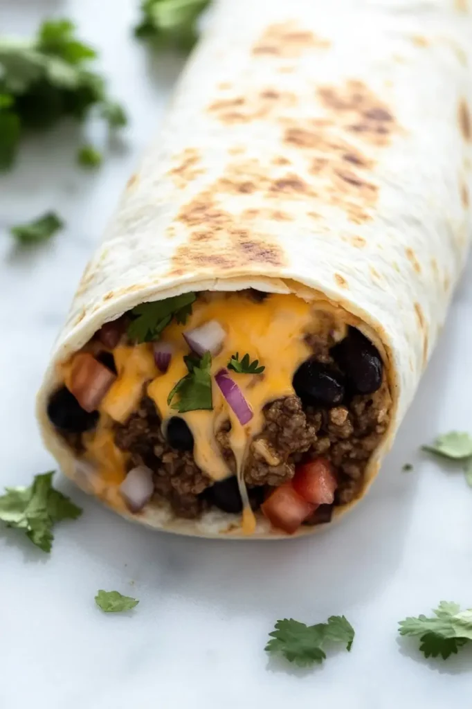 This beef and bean burrito brings satisfying protein and comforting flavors together in a warm, handheld meal. Great for a busy afternoon or a laid-back dinner.