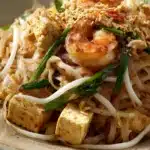 - Combines tender shrimp, crispy tofu, and fresh bean sprouts for a delightful texture contrast.