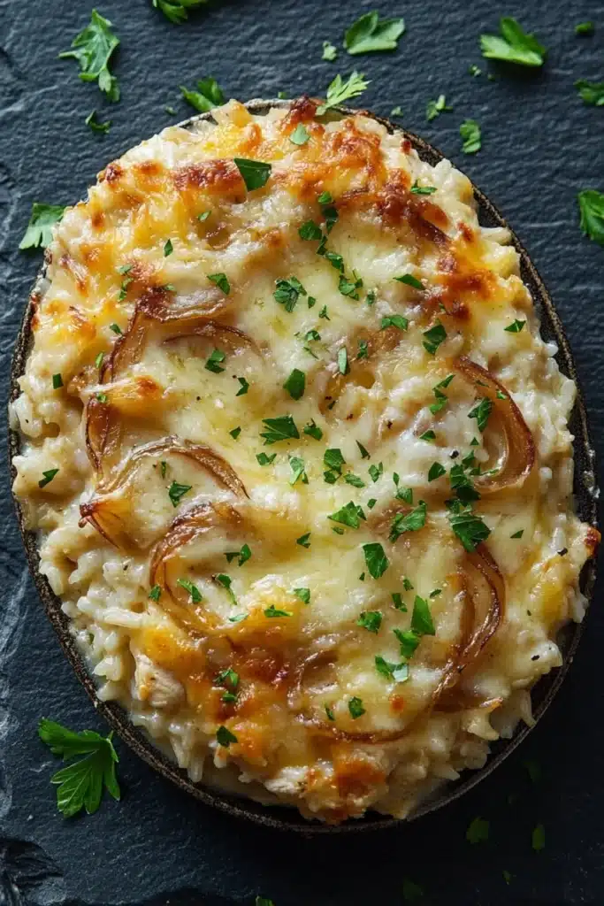 This French onion rice casserole with chicken combines tender chicken, savory caramelized onions, and cheesy baked rice into a dish that feels like a warm hug after a long day.