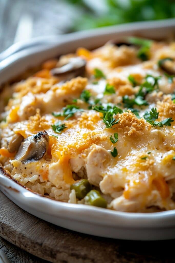 This single-serving chicken casserole wraps you in warmth and comfort, blending tender chicken and creamy veggies into a golden, bubbling dish made just for you.