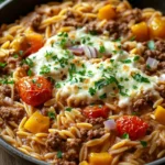 A quick and hearty one-pan meal featuring ground beef, tender orzo pasta, and a flavorful tomato-based sauce, perfect for a busy weeknight dinner.