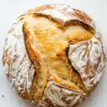 You don’t need any special equipment beyond a heavy oven-safe pot with a lid — no fancy mixers or bread machines. The Dutch oven helps create that steamy environment for a crusty exterior, but if you don’t have one, a deep oven-safe dish covered tightly with foil might work in a pinch. I usually serve this bread warm with olive oil and a sprinkle of flaky sea salt, but it’s equally good just slathered with butter and jam. If you want to experiment, I haven’t tested all of these, but adding herbs like rosemary or thyme to the dough might add a nice twist. Sometimes I dust the top with cornmeal, sometimes just flour — both work fine, just different textures. And if you’re short on time, slicing and freezing the bread means you can toast it later and still get that fresh-baked feeling.