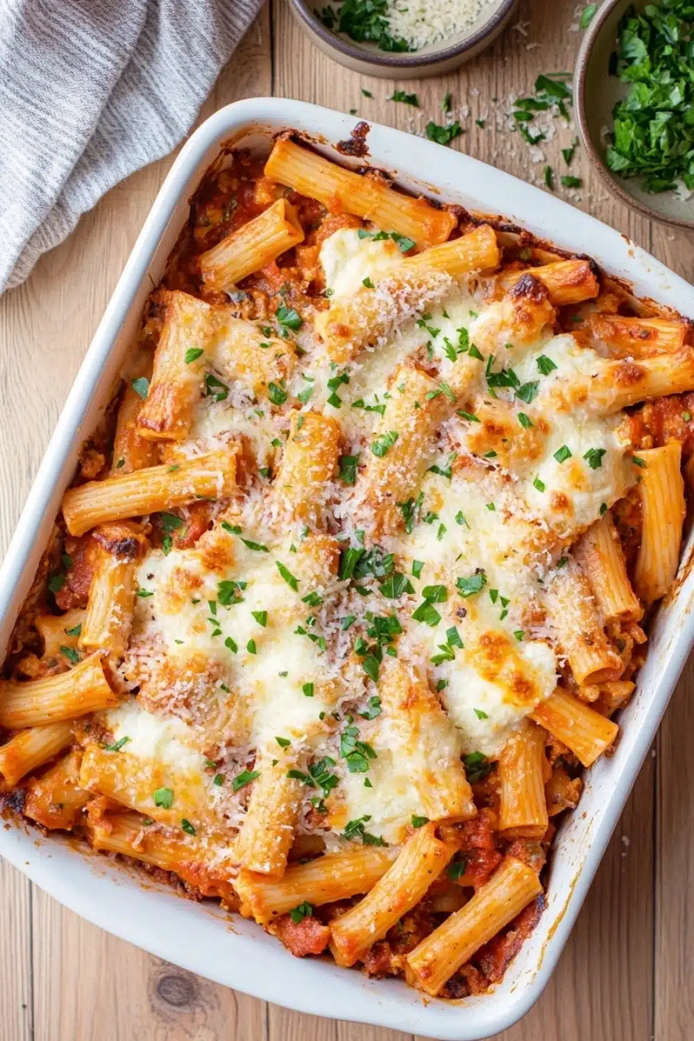 Can I freeze this baked ziti? Yes, you can freeze it before baking. Just cover it well and bake from frozen, adding extra time to the cooking. It’s convenient but might change the texture slightly.