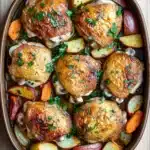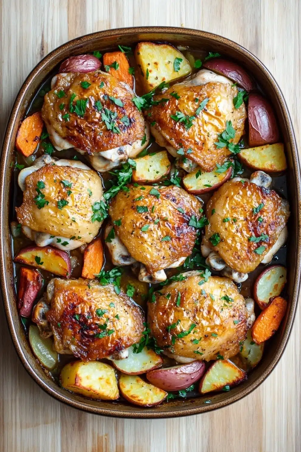 I remember the first time I made this recipe. I was juggling a few things in the kitchen, distracted by a phone call, and the chicken skin didn’t crisp up quite as perfectly as I’d hoped. Still, the flavors were unbeatable, and the whole house felt cozy. Somewhere between the sizzle on the stovetop and the roasted vegetables soaking up all those herbs, I realized this was the kind of meal I’d want to make again and again—even on nights when I’m a little less attentive.