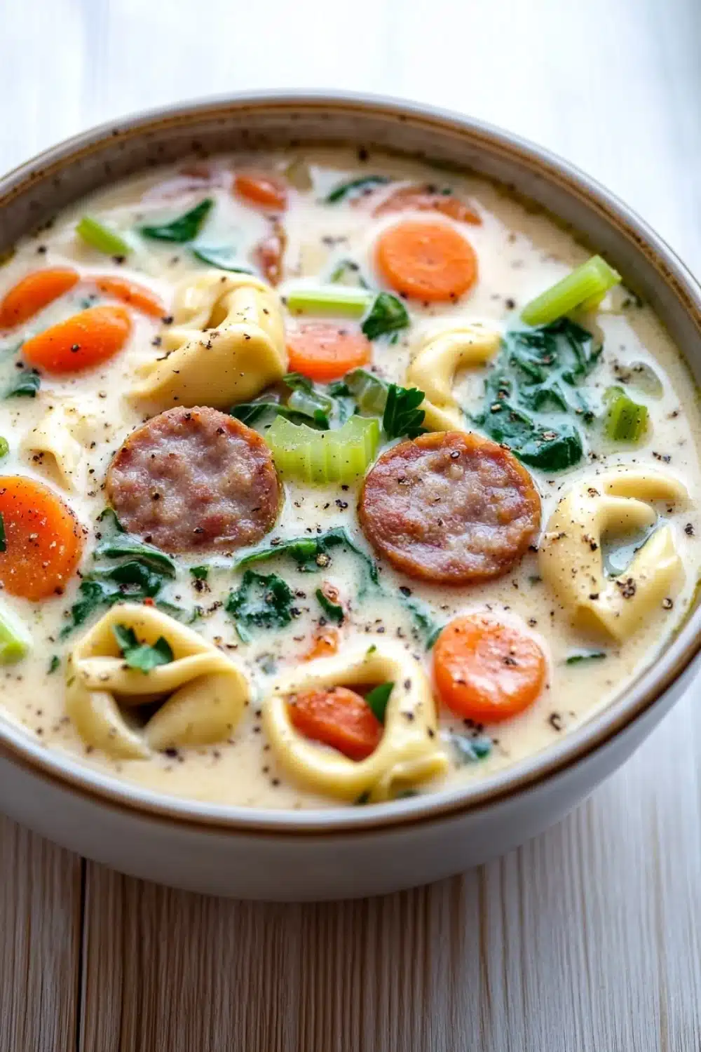 One Pot Creamy Sausage Tortellini Soup