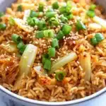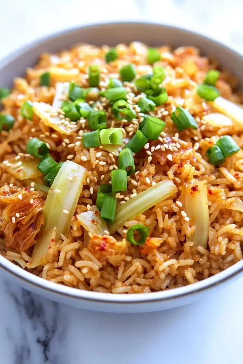 There’s something about the way the aroma of kimchi mingles with garlic and sesame oil that pulls you in—especially on a chilly evening when you’re just a little tired and not quite ready to commit to a full dinner prep. I remember one night, I was halfway through scrolling on my phone, distracted by messages and half-watching a show I wasn’t really into. The kitchen was calling but I didn’t want a big production. This dish was waiting there, almost like a warm hug in a pot. The spicy tang of kimchi simmered just right, and the rice absorbed every bit of flavor, making each bite a tiny celebration of comfort. I didn’t even mind that I forgot to slice the green onions until after the first few bites—it all tasted just as good.