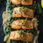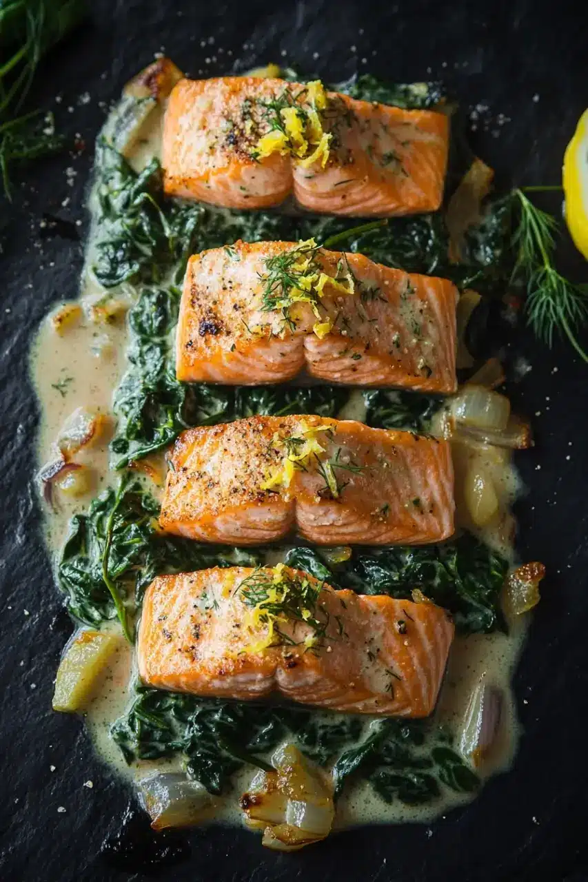 It’s an honest dinner, really. No complicated steps or strange ingredients, just fresh salmon, bright spinach, and a creamy sauce that feels like a small treat after a busy day. And sure, it’s simple — and that’s kind of the point. It’s not about impressing anyone; it’s about that quiet satisfaction of sitting down to a meal that’s both nourishing and fuss-free.