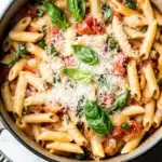 If you’re worried about timing, it really fits into a busy evening. I haven’t tested it with every type of pasta, but penne holds up nicely without turning mushy. Just keep an eye on the liquid as it simmers.