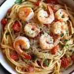 Last week, I tossed this together on a busy evening when my mind was juggling too many things at once. I remember chopping garlic, the kitchen filling with its pungent scent, while the shrimp sizzled in the pan, slightly pink but not quite done. The tomatoes bubbled away, their juices blending with the broth, and I kept stirring, distracted by a phone call that lasted longer than I expected. Somehow, the pasta still cooked perfectly, soaking up all those flavors. By the time I sat down, the Parmesan had melted in, and the dish was warm and welcoming. It wasn’t flawless—the shrimp could’ve been a touch more tender—but that imperfection made it feel homemade, real.