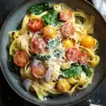 There’s something about cooking in one pot that feels both efficient and comforting. I remember the last time I made this one pot pasta tagliatelle, I was juggling a few things at once—half-listening to a podcast, the kettle whistling in the background, and my cat weaving around my legs for attention. The smell of garlic and oregano filled the air, and the cherry tomatoes started to soften, bursting their sweet juices into the broth. I wasn’t watching the clock too closely, just stirring occasionally, letting the pasta soak it all in. When I finally sat down to eat, the pasta was perfectly tender, with little pockets of spinach that wilted just right. It wasn’t fancy, but it felt like a hug after a busy day. And yes, I might have left a bit of sauce on the stove—forgotten in the moment because I was already dreaming of seconds.