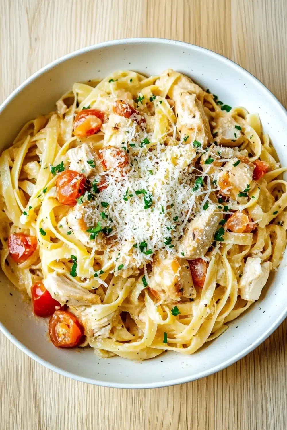 I remember the first time I made this, the kitchen smelled like a little Italian bistro crossed with homey comfort. I was juggling a call and almost forgot the timer — which probably explains why I stirred the sauce a little too enthusiastically and ended up with some splatters on the counter. But hey, those minor mishaps didn’t stop the dish from being a hit. The chicken was juicy enough to make me pause and savor each bite, while the creamy tomato sauce coated every strand of pasta just right. It’s a meal that feels like a warm hug, even when you’re rushing through your evening.