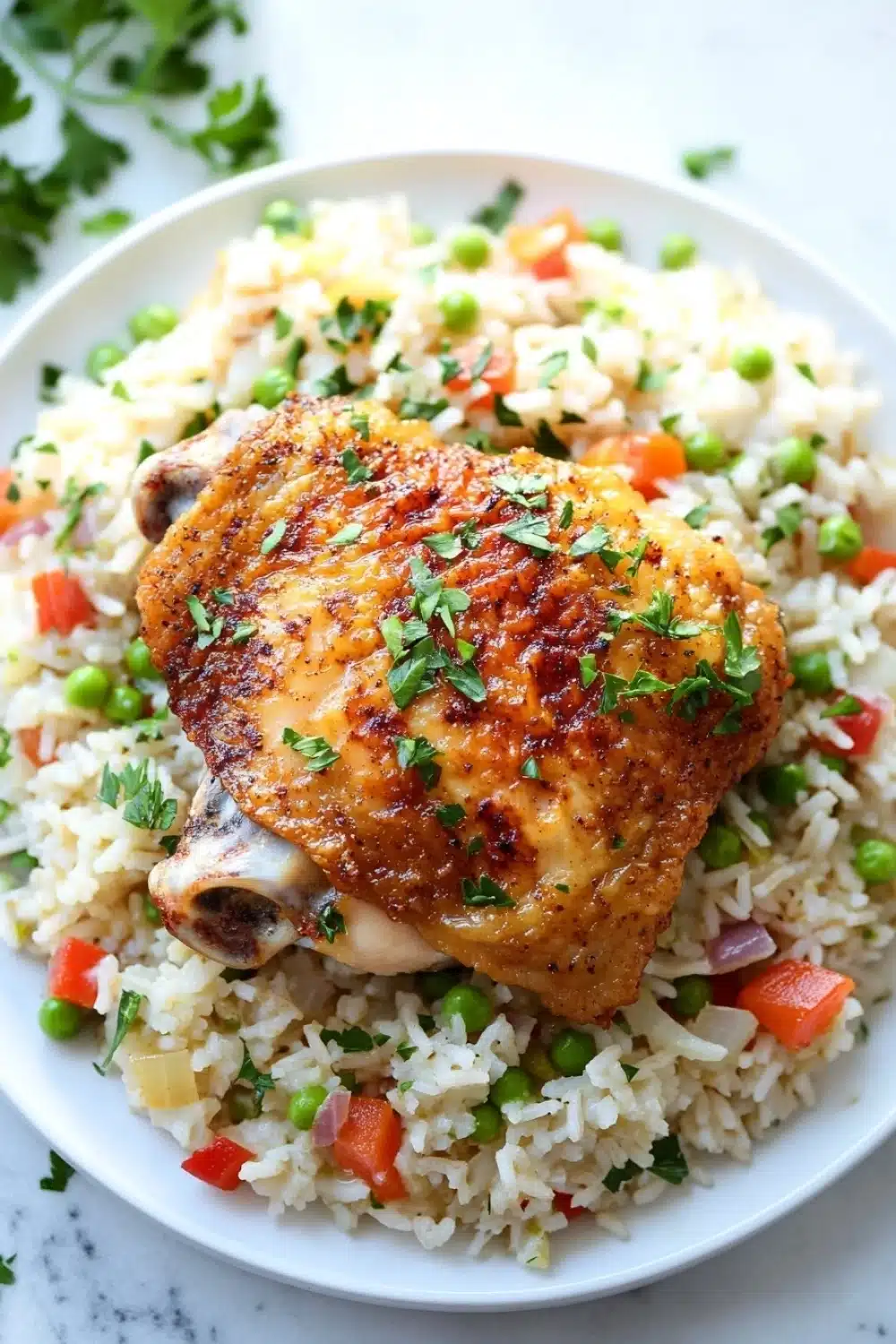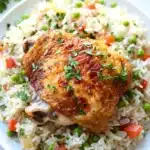 A simple and flavorful one pot rice and chicken recipe that’s perfect for an easy weeknight dinner. Tender chicken thighs cooked with aromatic spices, vegetables, and fluffy rice all in one pot for minimal cleanup.