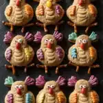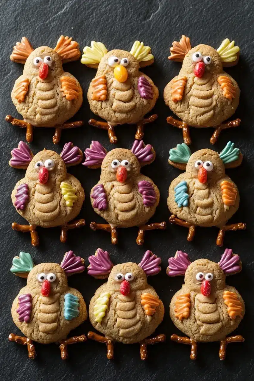 Last November, I found myself distracted by a text while shaping the dough, accidentally making one cookie slightly larger than the rest. It gave that batch a bit of character—kind of like the one turkey that’s just a little too enthusiastic about Thanksgiving dinner. The crunch of mini pretzels pressed into warm cookies, the bright pop of candy colors arranged like feathers—it’s a moment that nudges you to smile even before the first bite. Somehow, these imperfect little turkeys make the holiday feel more personal, more joyful.