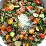 Last week, I started this recipe almost absentmindedly—juggling a phone call, a half-sipped cup of tea forgotten on the counter, and a dog nudging my leg for attention. Somewhere between stirring the turkey and tossing in the zucchini, I realized I was actually looking forward to dinner. The cherry tomatoes burst with freshness, the spinach wilted just right, and that sprinkle of Parmesan melted into a cozy finish. It’s not fancy, but it’s honest and filling, just what I needed after a long day.