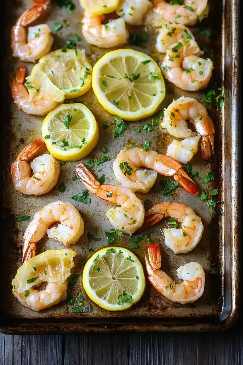 A quick and easy sheet pan shrimp recipe featuring succulent shrimp roasted with fresh lemon, garlic, and herbs for a bright and flavorful meal.