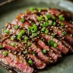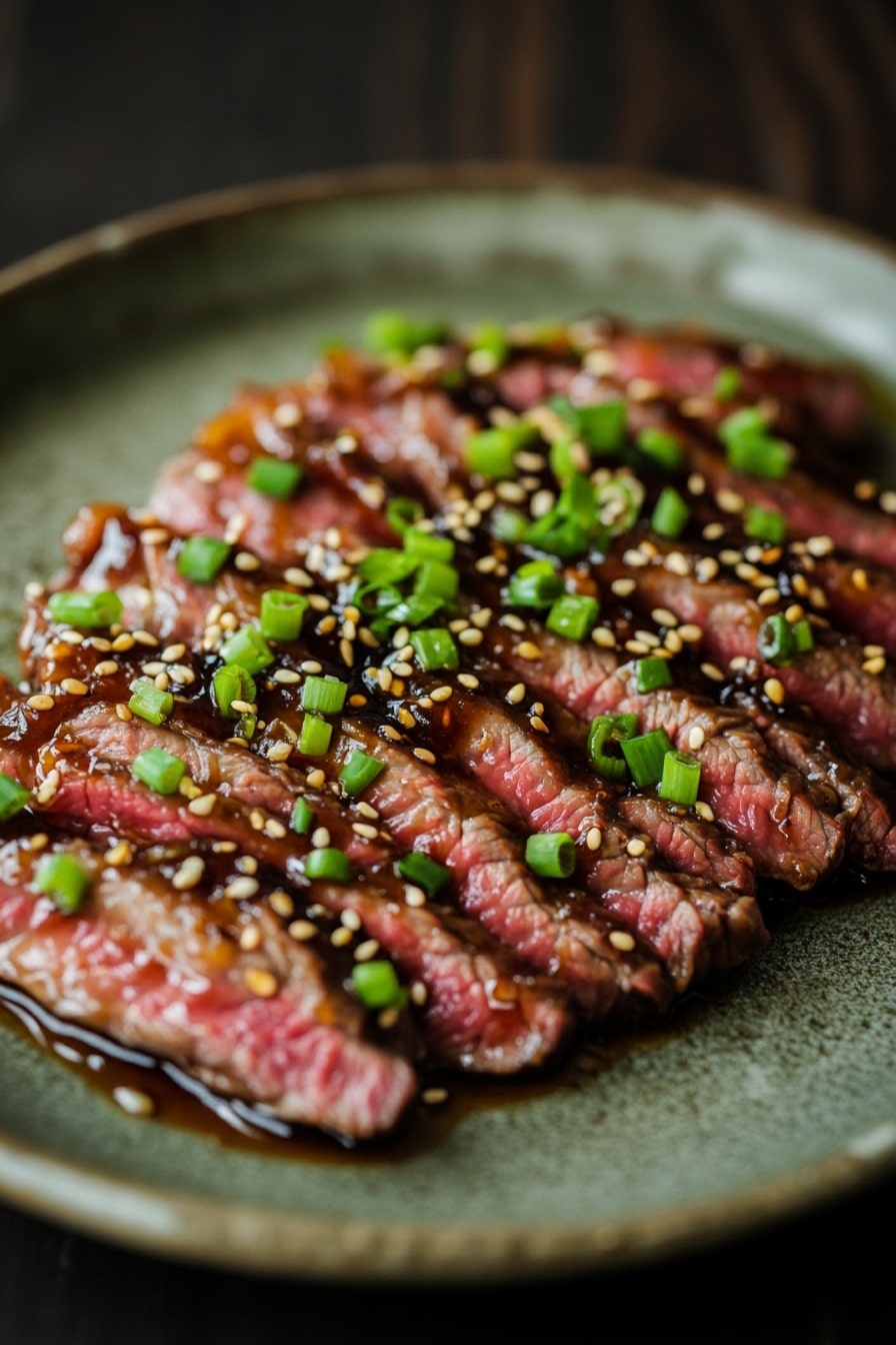 There’s a satisfying rhythm to cooking this dish, from whisking together the marinade to watching the beef sizzle on the grill. The sesame seeds and green onions sprinkled on top add just the right touch of texture and freshness, making every forkful a little celebration. It’s quick enough for a weeknight but special enough to impress, even if your kitchen feels a bit chaotic — like mine did that evening.
