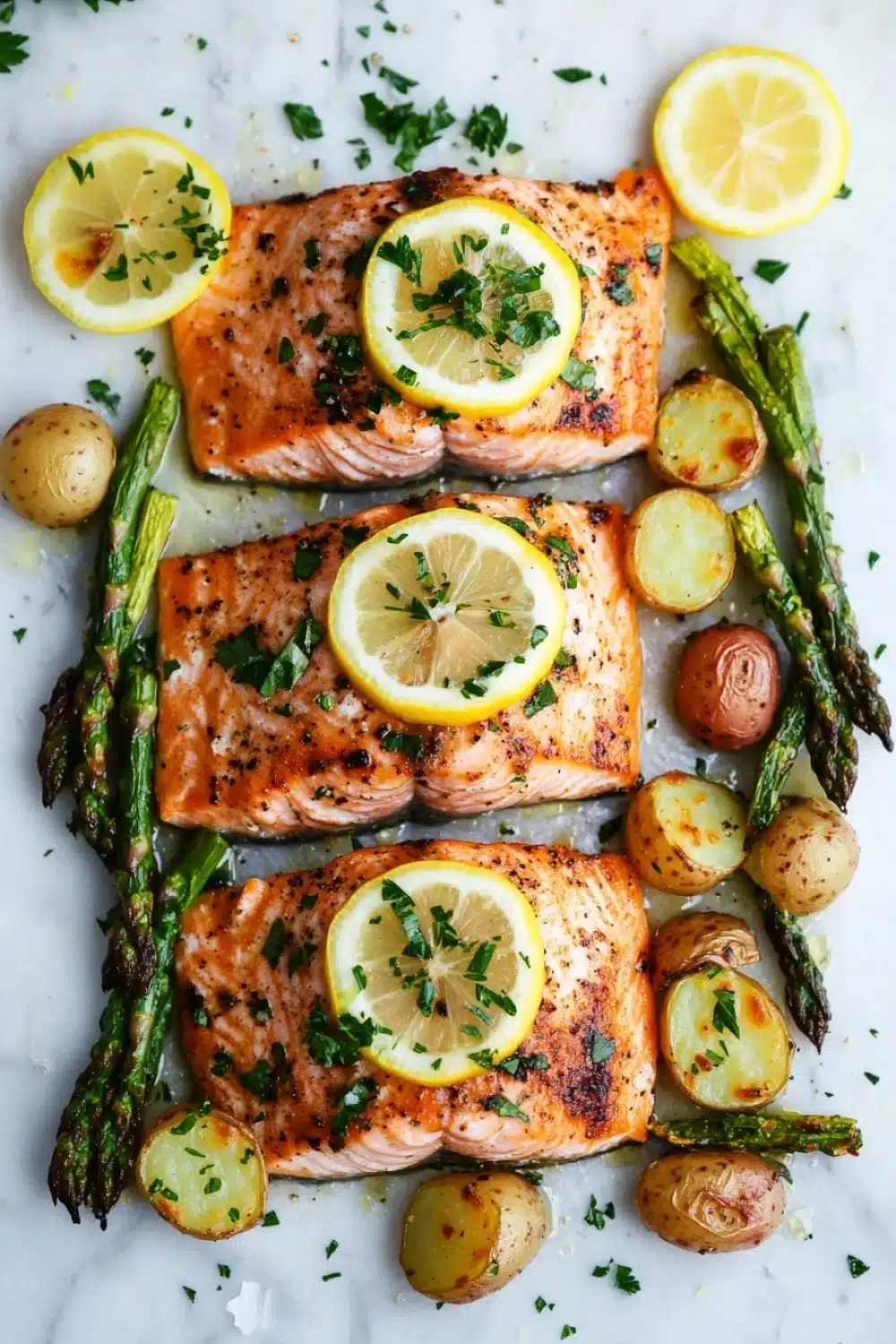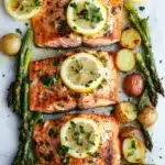 A simple and delicious sheet pan dinner featuring perfectly roasted salmon fillets alongside tender vegetables, all cooked together for an easy, healthy meal.