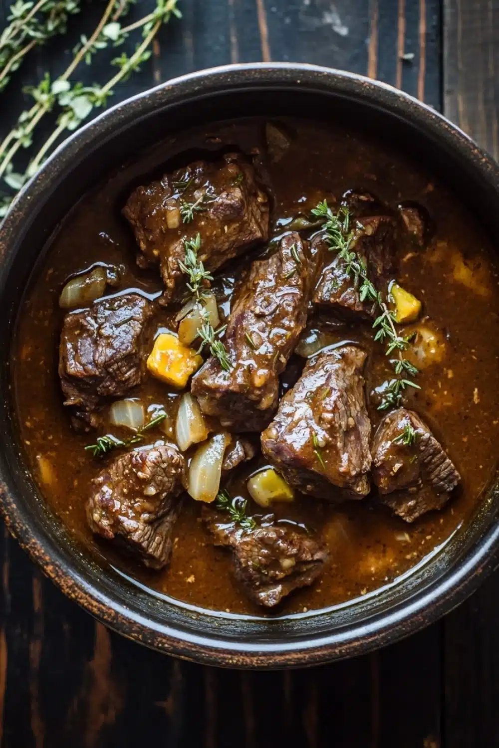 Tender and flavorful beef tips cooked slowly with rosemary and savory ingredients, perfect for a comforting meal.
