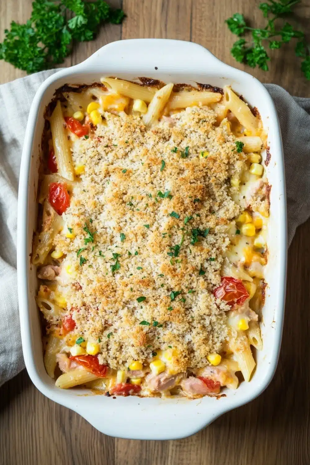 A comforting and easy-to-make tuna pasta bake that’s perfect for preparing ahead and freezing. This hearty dish combines tender pasta, creamy cheese sauce, and flavorful tuna, topped with a crispy breadcrumb crust.