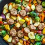 A hearty and flavorful one-pan meal featuring savory apple chicken sausage, tender harvest vegetables, and a touch of autumn spices. Perfect for a quick and wholesome dinner.