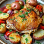 There’s something about the smell of roasting chicken that just pulls you into the kitchen. I remember one evening when I was juggling a million things—half-distracted by a buzzing phone and a kid asking questions I wasn’t quite ready to answer. Still, the scent of those chicken thighs, sizzling and crisping in the oven, anchored me. The crackle of the skin, the warm, garlicky aroma mingling with sweet roasted red peppers and onions—it felt like a small, comforting pause in all the chaos. I didn’t time it perfectly; the potatoes were a little softer than I’d hoped, but honestly, that just meant they soaked up more of the herb sauce. It’s the kind of dinner that’s forgiving, easy to love, and somehow still feels like a treat.