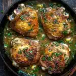 Remove the top skillet carefully. Flip the chicken thighs and cook for an additional 8 minutes, or until the internal temperature reaches 165°F (74°C). Remove the chicken from the skillet and set aside on a plate.