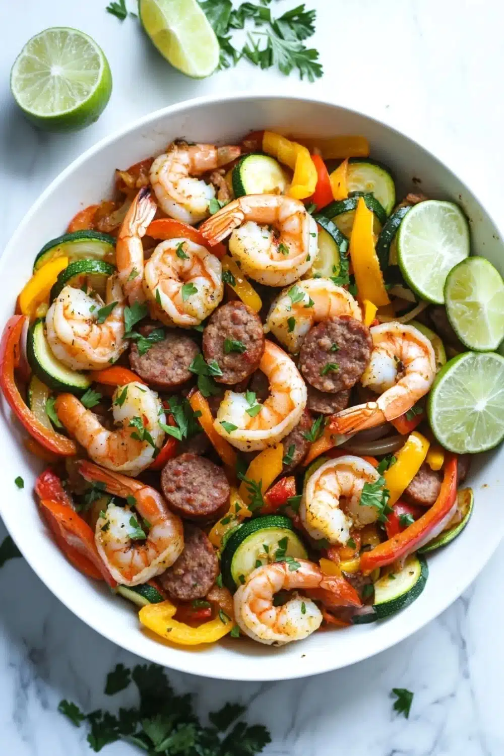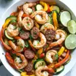 There’s something about the sizzle of shrimp hitting a hot skillet that instantly pulls you into the kitchen. I remember one evening, distracted by a phone call that dragged on longer than expected, I almost missed the moment when the sausage started to brown just right. The smell of smoked paprika mingling with garlic filled the air, a little smoky, a little spicy, and completely inviting. The colorful peppers and zucchini softened just as the shrimp curled up pink and ready. It wasn’t perfect timing, but it was honest and full of flavor — the kind of meal that feels like a warm hug after a day that didn’t quite go as planned.