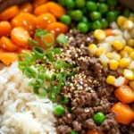 I remember the first time I tried this recipe – the aroma of garlic and onions sizzling with ground beef filled the air while I was halfway distracted by the kids arguing about something trivial. Somehow, the rice soaking up that rich broth and soy sauce felt like a small accomplishment in an otherwise chaotic evening. I wasn’t watching the clock precisely, and the veggies weren’t perfectly measured—just thrown in somewhere between a glance and a “where’d that spoon go?” moment. Yet, when I finally plated it with a sprinkle of green onions and sesame seeds, it felt like a proper dinner. No stress, just real food.