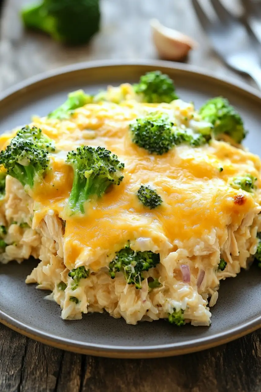 A comforting and easy-to-make casserole combining tender rotisserie chicken, fresh broccoli, fluffy rice, and a creamy cheesy sauce baked to perfection.
