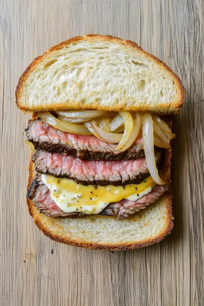 What’s the best way to reheat leftovers? Gently warm the steak slices in a skillet or microwave, then rebuild the sandwich fresh to keep bread from getting mushy.