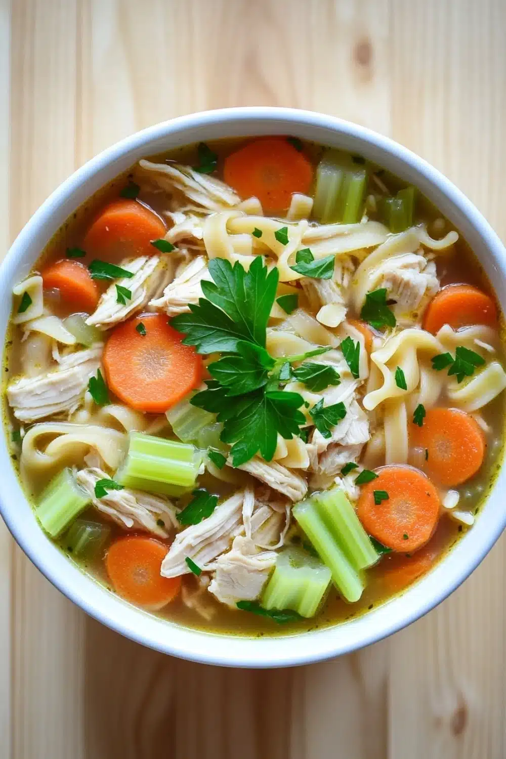 A comforting and easy-to-make crock pot chicken noodle soup loaded with tender chicken, fresh vegetables, and hearty noodles simmered to perfection.