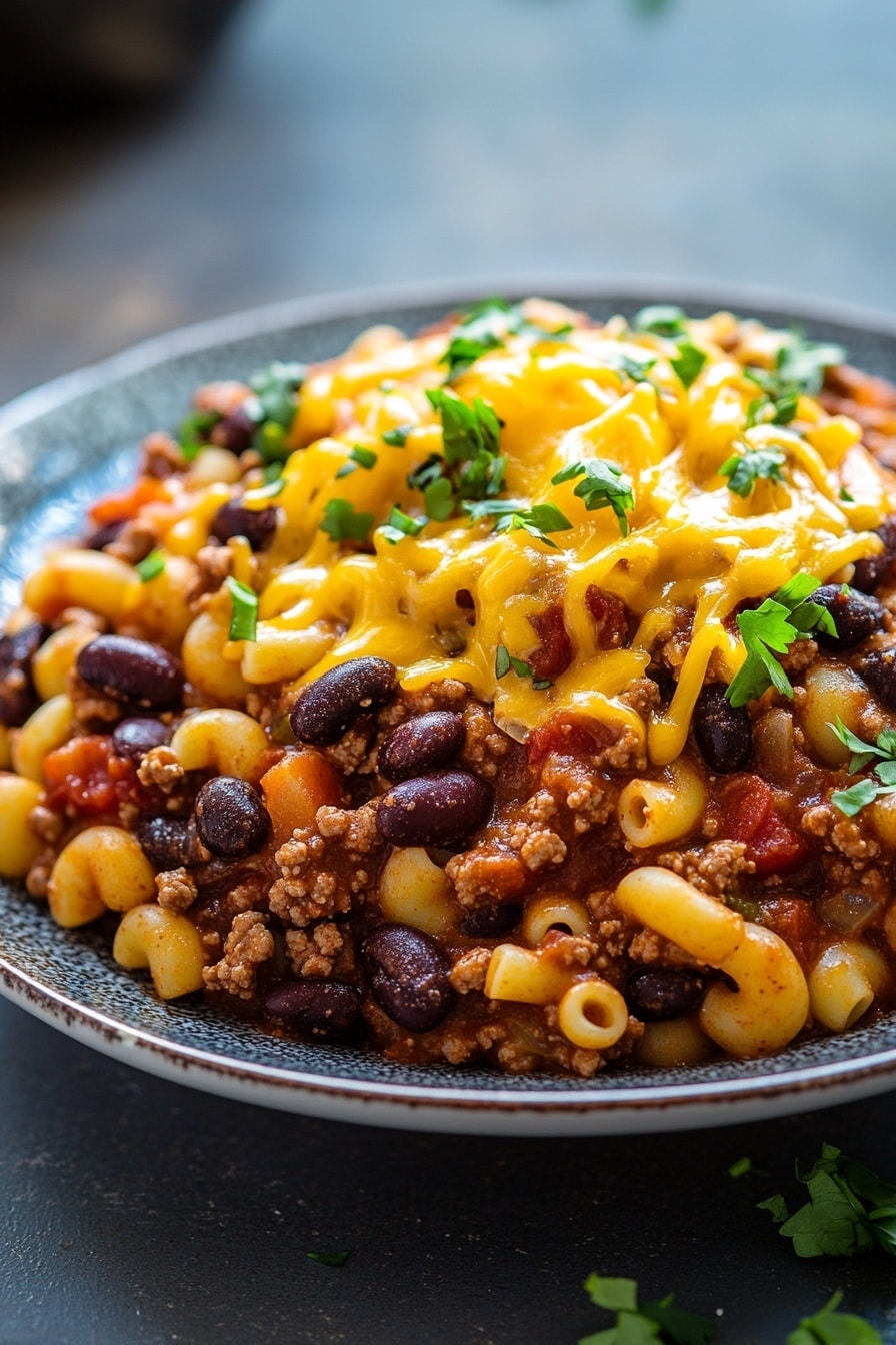 A hearty and comforting slow cooker chili macaroni combining tender macaroni pasta with flavorful chili, perfect for an easy weeknight meal.